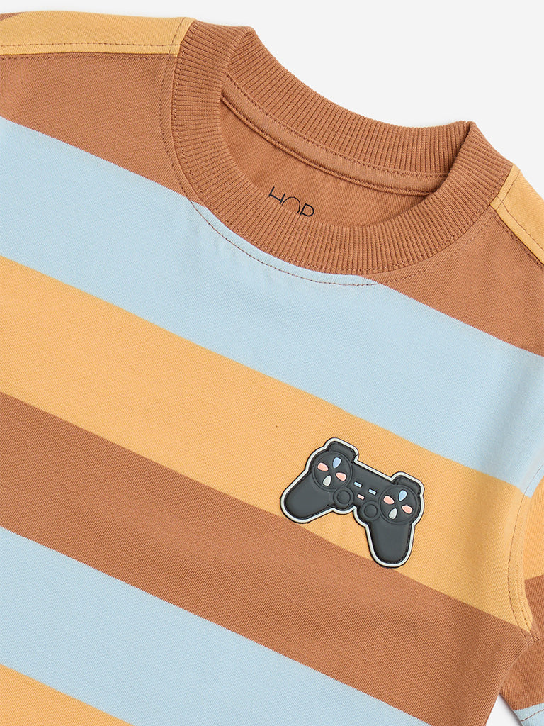 HOP Kids Brown Striped Design Cotton T-Shirt