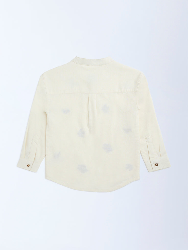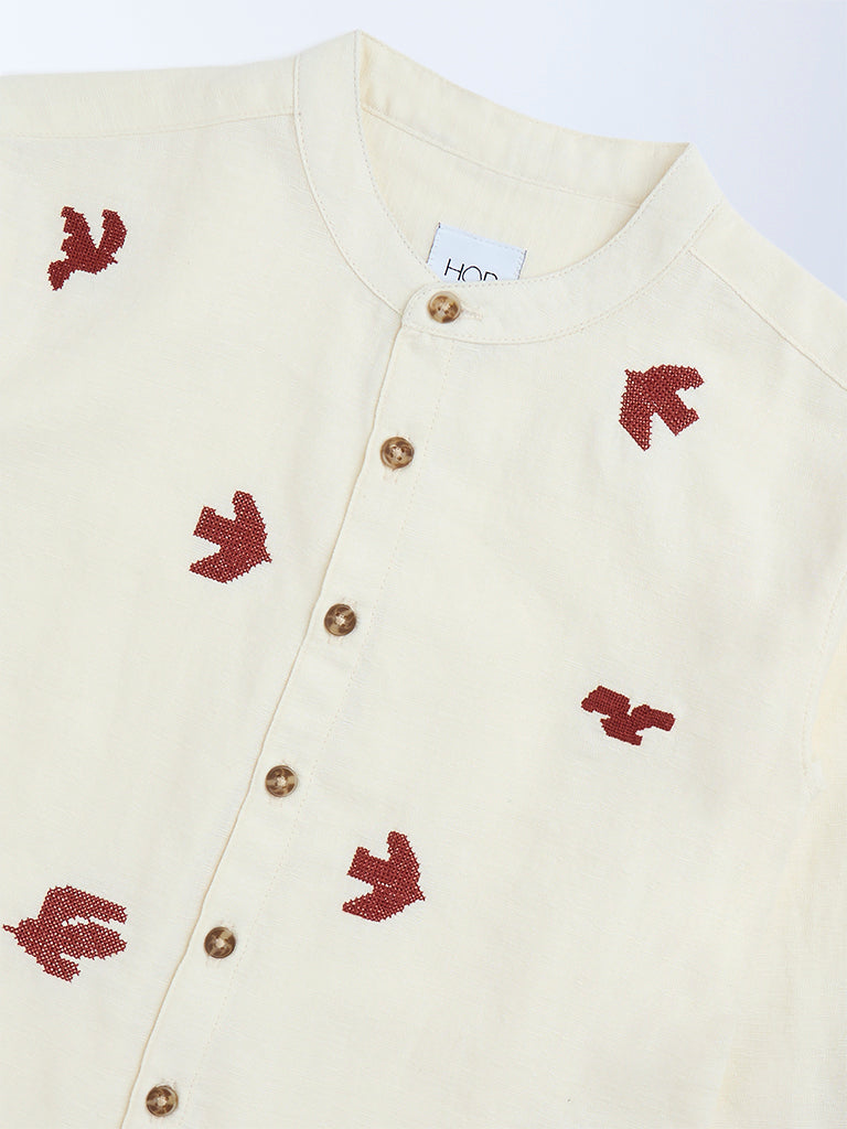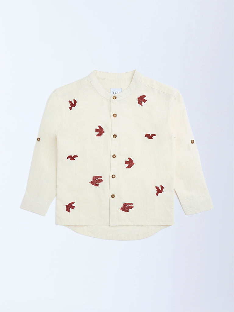 Add a touch of charm to your little one’s wardrobe with this cream shirt from HOP Kids. Crafted from pure cotton for all-day comfort. it features intricate embroidered detailing that brings playful personality to every stitch. The band-neck collar and button placket lend a smart finish. while the full sleeves make it perfect for dressing up on special outings or family get-togethers.