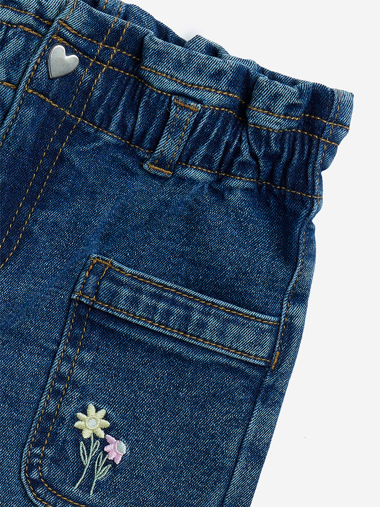 These dark blue denim shorts from HOP Kids offer a cute and comfy upgrade to their everyday wardrobe. Crafted from pure cotton. they feature a mid-rise fit with a ruffled buttoned waistband and a classic zipper fly. Finished with floral embroidery and multiple pockets. they blend playful details with practical style.