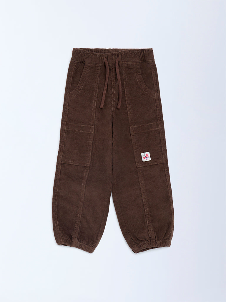 HOP Kids Dark Brown Mid-Rise Corduroy Joggers