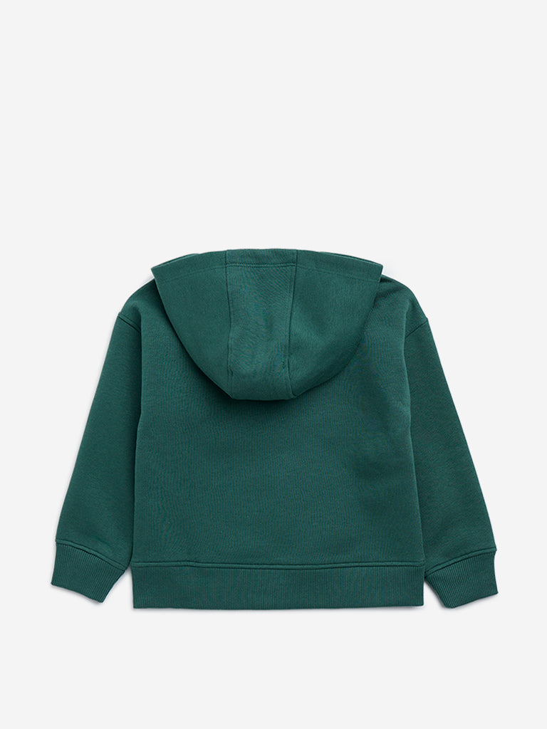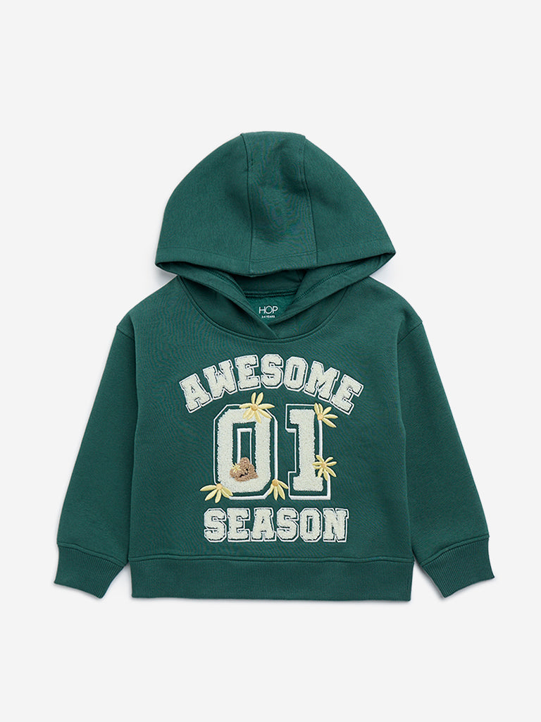 HOP Kids Dark Green Text Design Cotton-Blend Sweatshirt