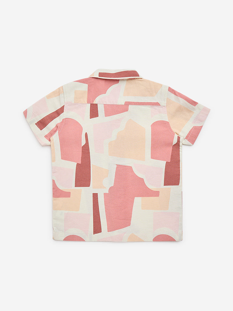 HOP Kids Dusty Pink Abstract Pattern Cotton Shirt