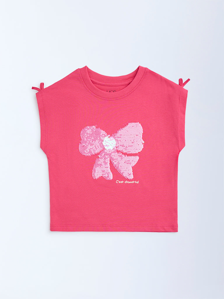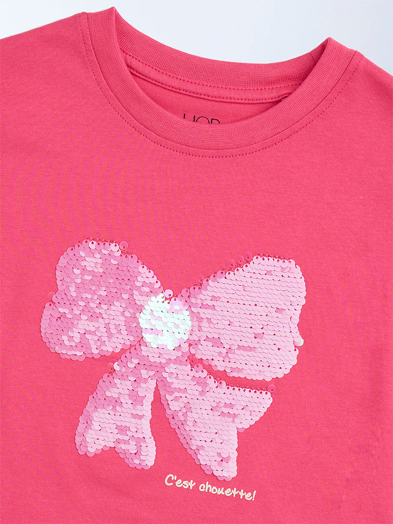 HOP Kids Fuchsia Sequin Detailed Cotton Top