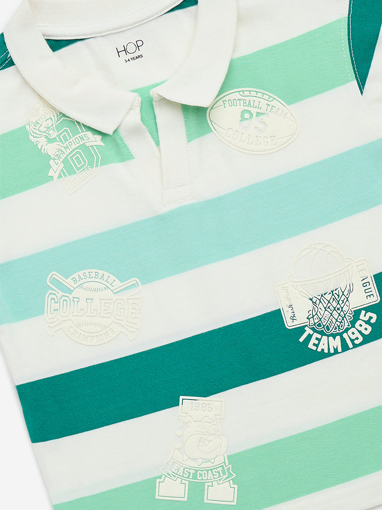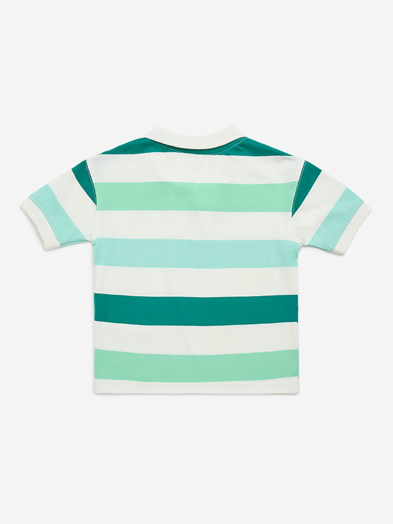 HOP Kids Green Colour-Blocked Cotton Polo T-Shirt