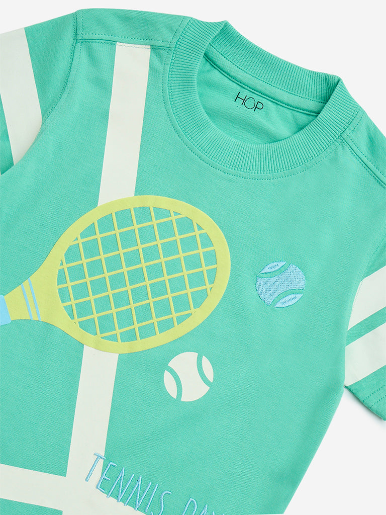 HOP Kids Green Sports-Themed Cotton T-Shirt