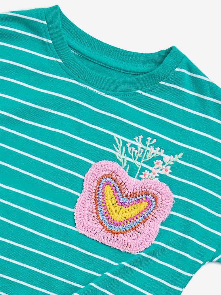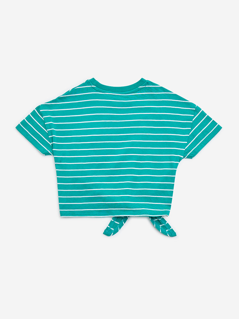 HOP Kids Green Stripe Detailed Cotton T-Shirt
