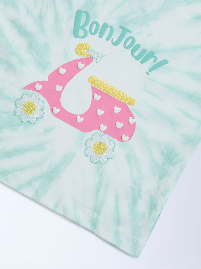 HOP Kids Green Tie-Dye Design Cotton T-Shirt