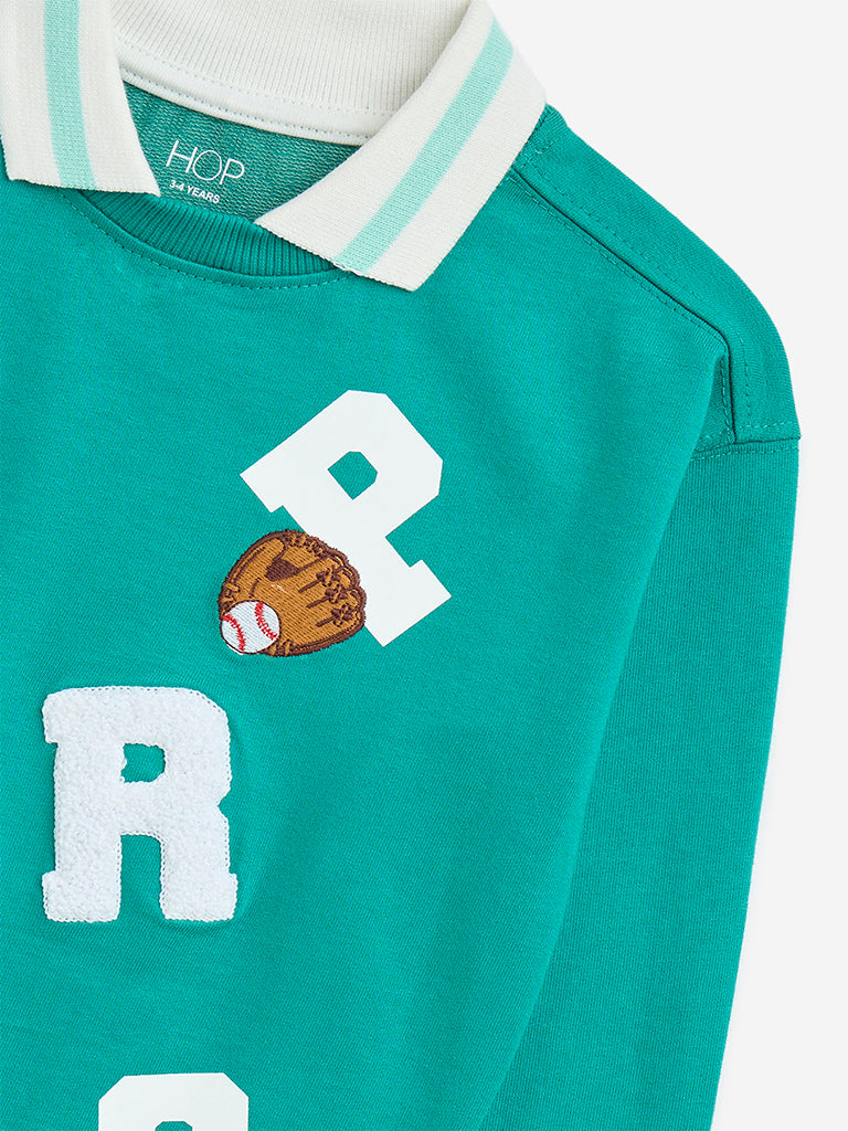 HOP Kids Green Typographic Design Cotton-Blend Sweatshirt