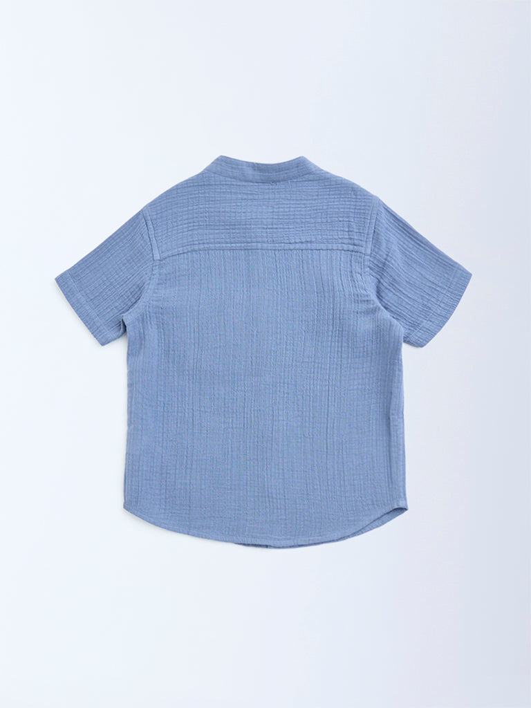 HOP Kids Kids Dusty Blue Crinkle-Textured Cotton Shirt