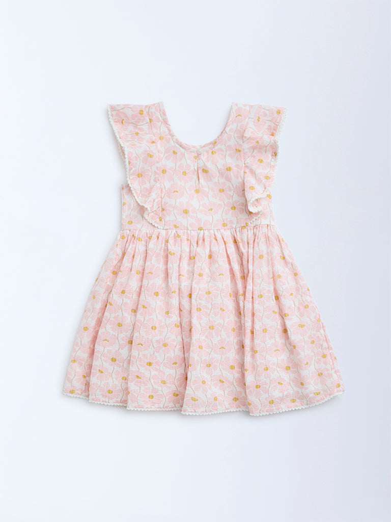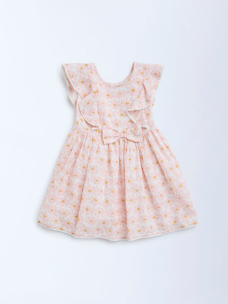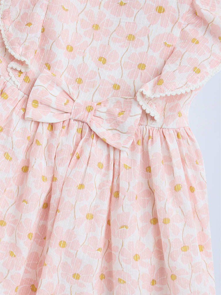 HOP Kids Kids Peach Floral Design A-Line Cotton-Blend Dress