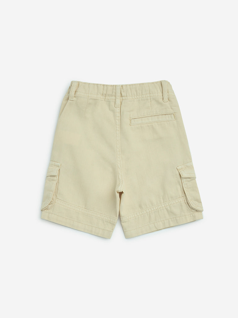 HOP Kids presents these light beige shorts crafted from a sturdy cotton-rich fabric for everyday ease. Designed in a classic cargo style. they feature a buttoned waist. belt loops. a zip closure. and multiple flap pockets for a functional finish.