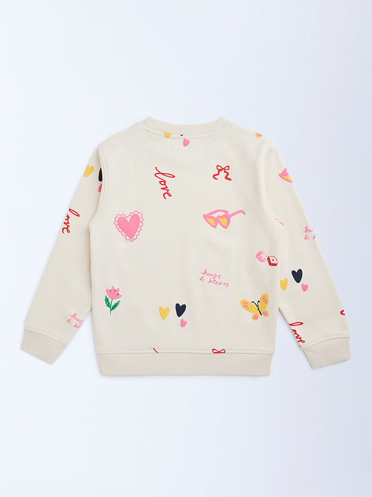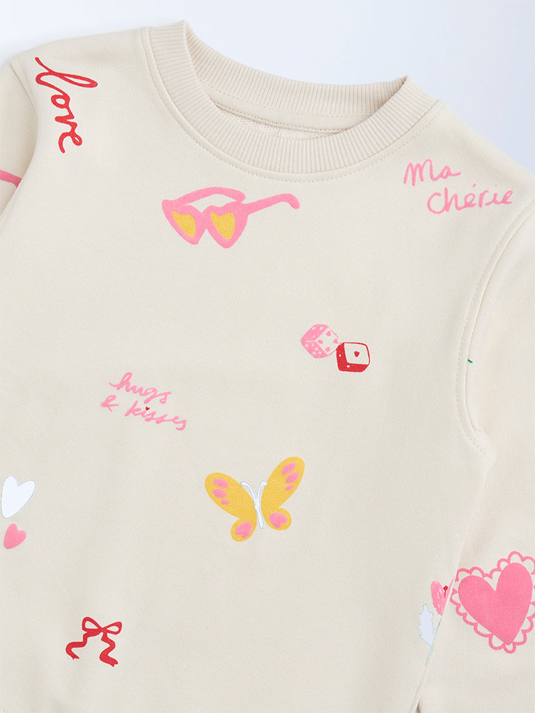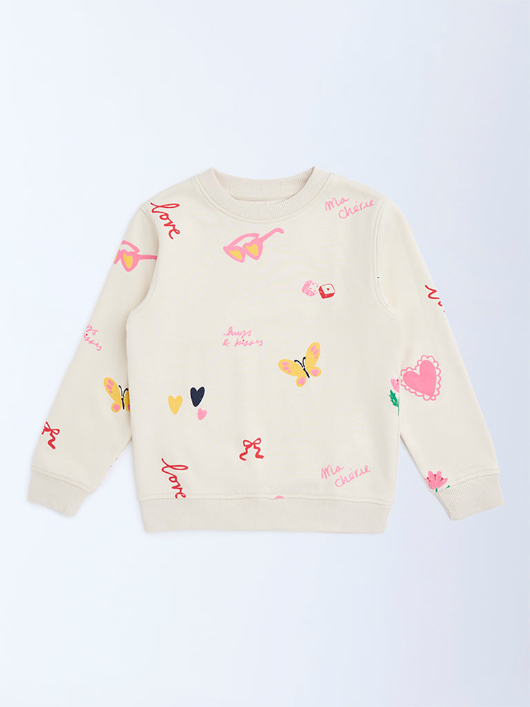 HOP Kids Light Beige Printed Cotton-Blend Sweatshirt