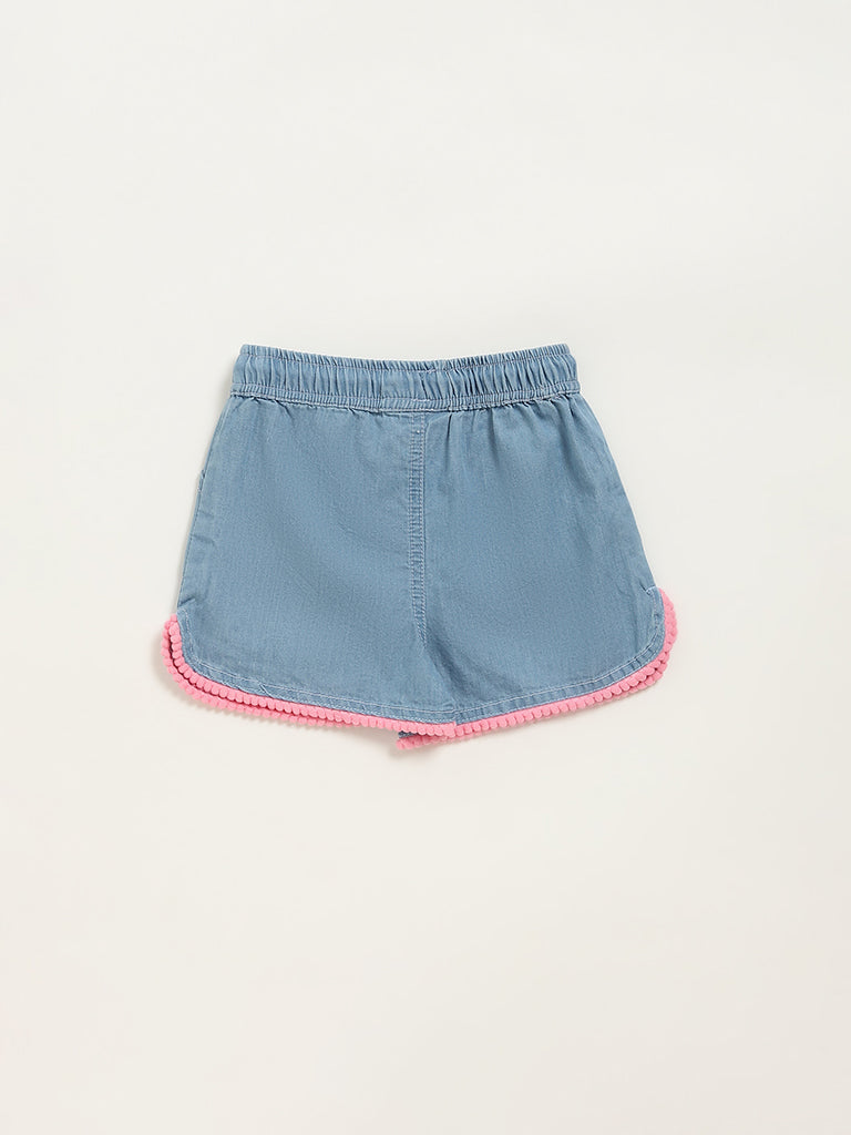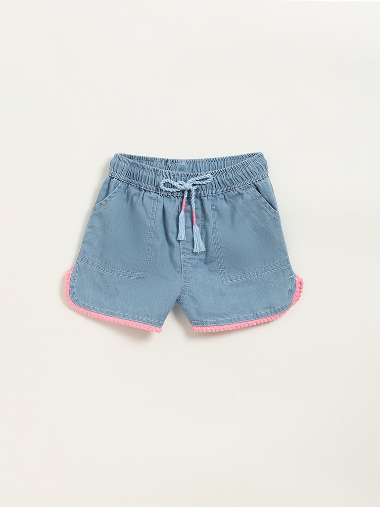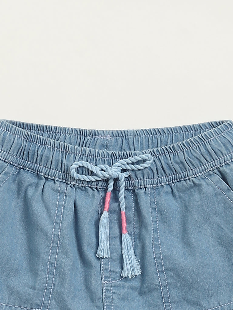 HOP Kids Light Blue Chambray Mid Rise Cotton Shorts