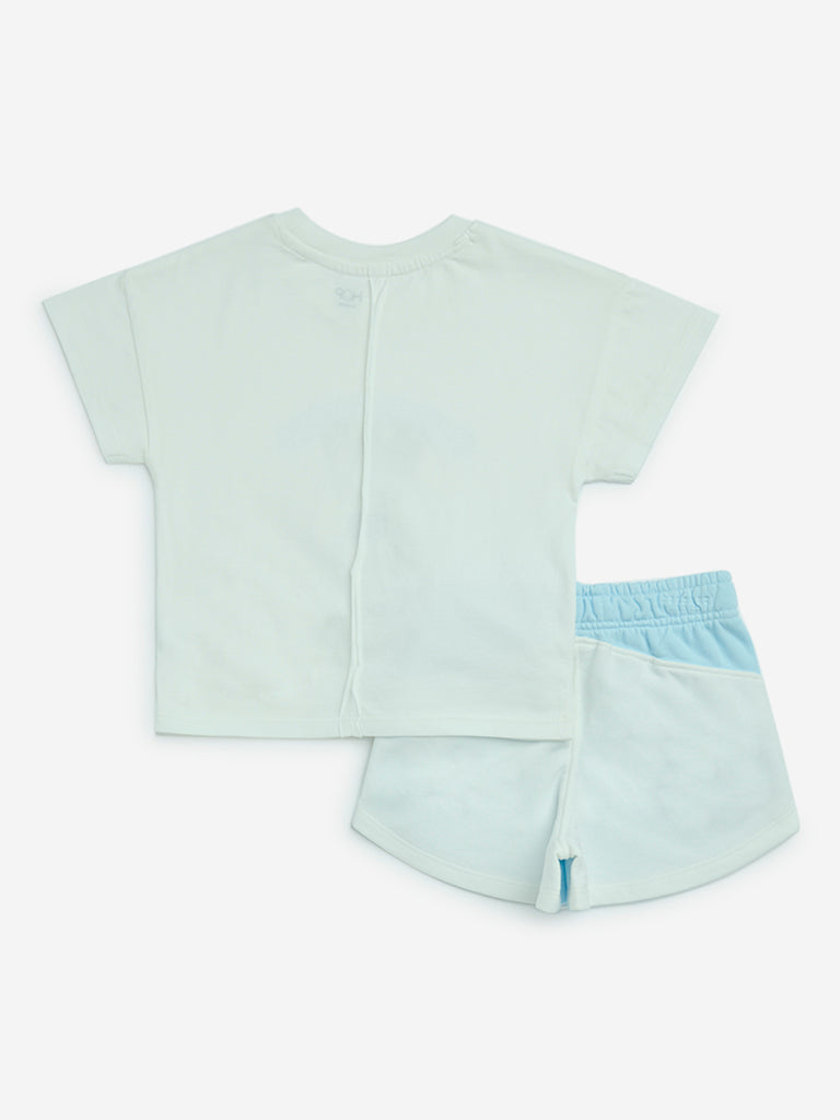 HOP Kids Light Blue Cotton-Blend T-Shirt and Shorts Set