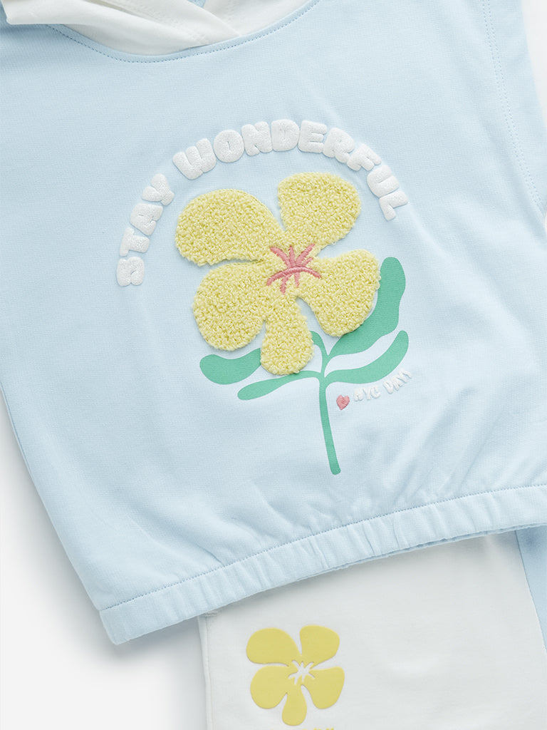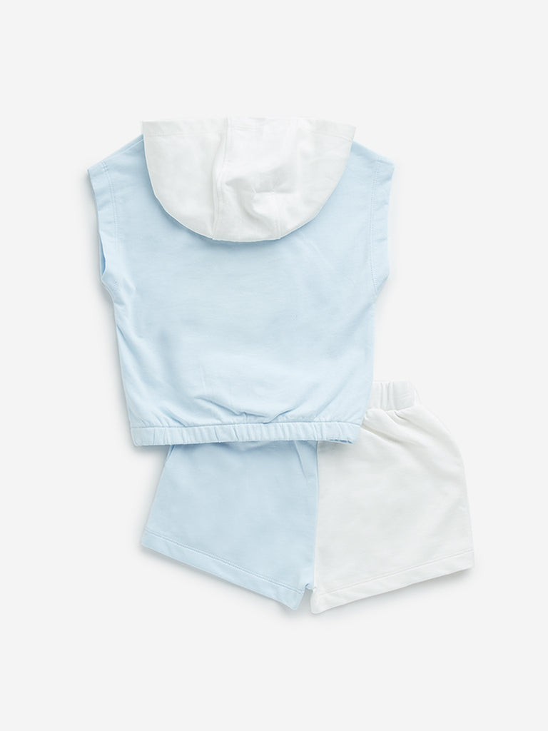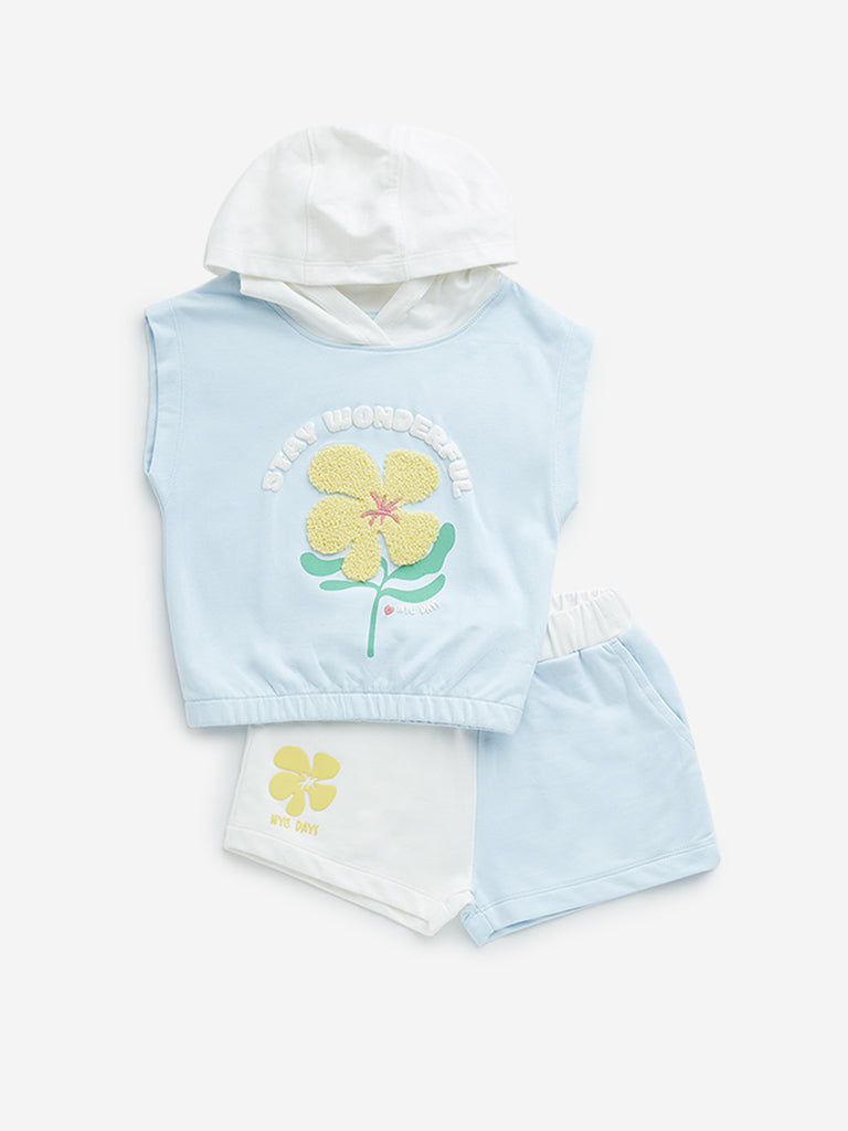HOP Kids Light Blue Cotton T-Shirt and Shorts Set