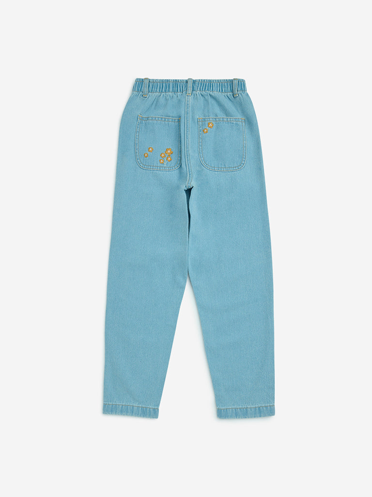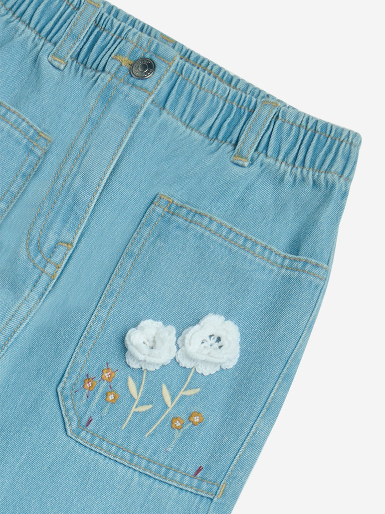 These light blue jeans from HOP Kids are cut from a breathable fabric to keep your little one comfy all day. Styled with a buttoned waistband. belt loops. and a zip fly. this pair stands out with floral embroidery on the pockets—lending a sweet. playful touch.