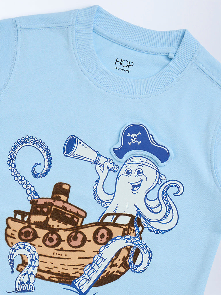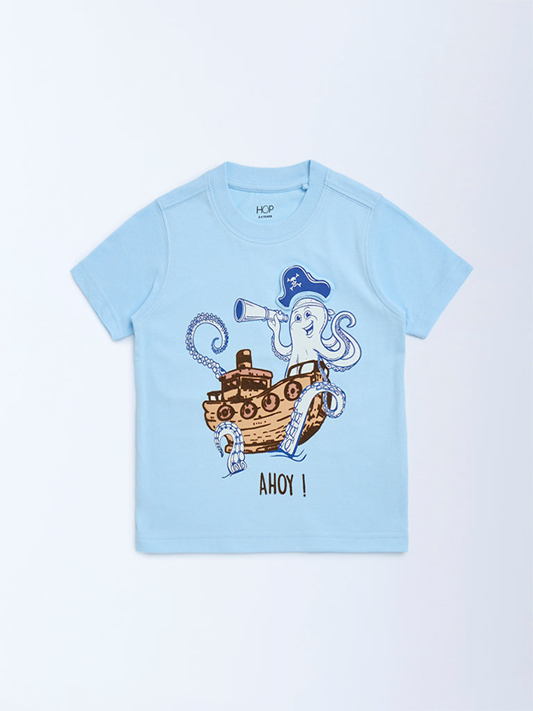 HOP Kids Light Blue Pirate-Themed Cotton T-Shirt