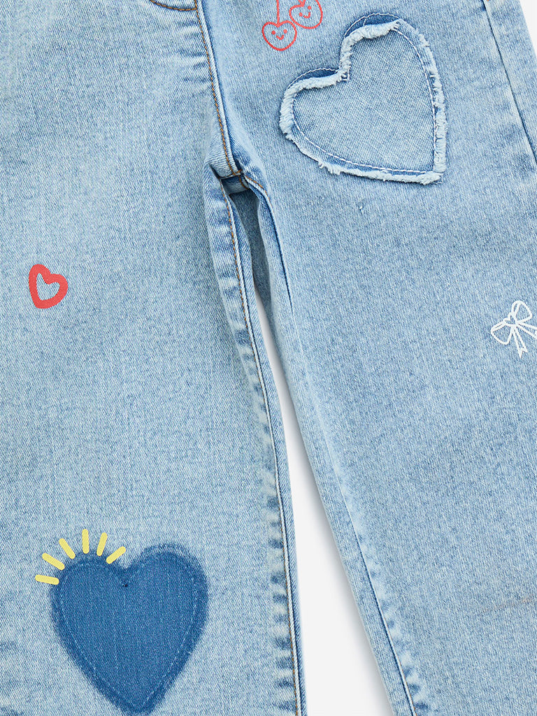 Add charm to your little one’s wardrobe with these light blue wide-leg jeans from HOP Kids. Accented with embroidered hearts and playful motifs. these mid-rise jeans feature an elasticated waistband and multiple pockets for added functionality.