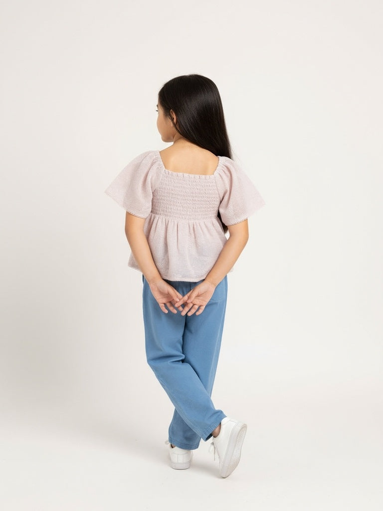 HOP Kids Light Pink Smocked Cotton-Blend Top