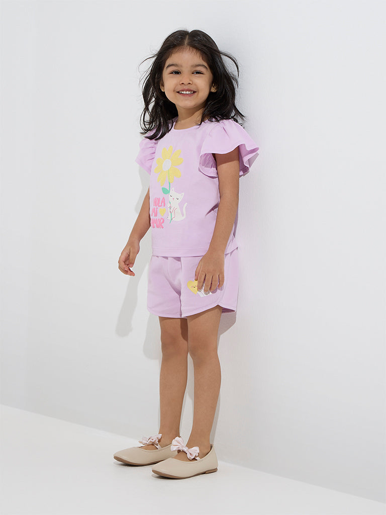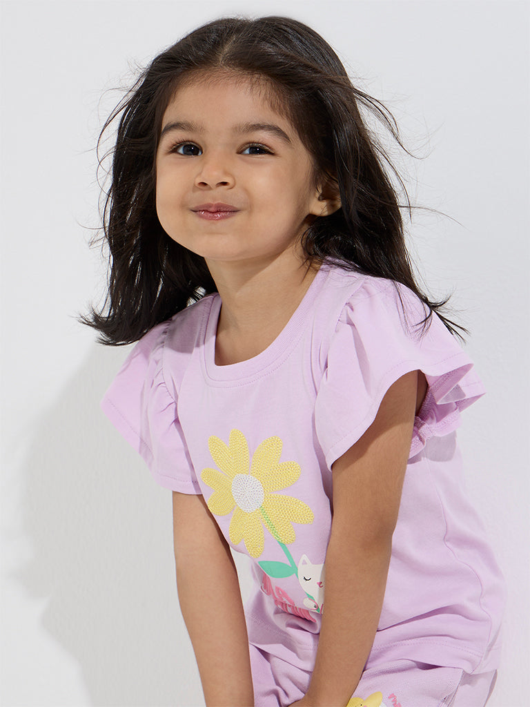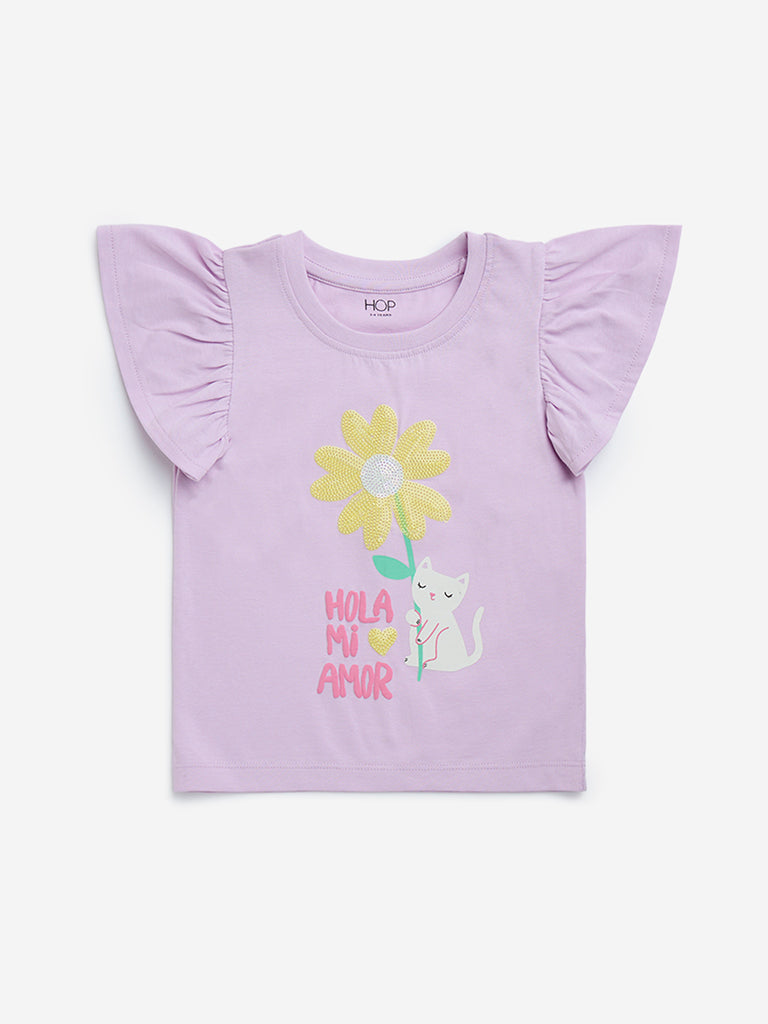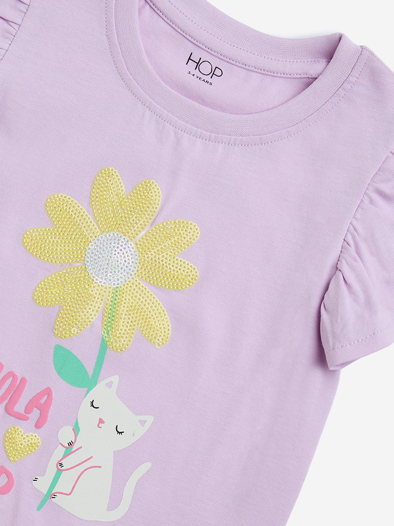 HOP Kids Lilac Sequin Floral Detailed Cotton Top