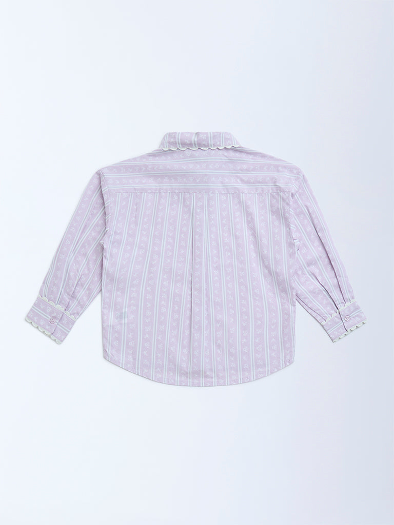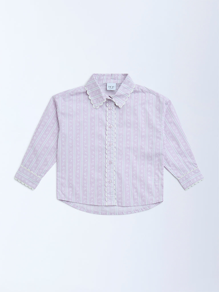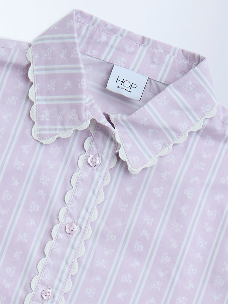 HOP Kids Lilac Stripe Printed Cotton Shirt
