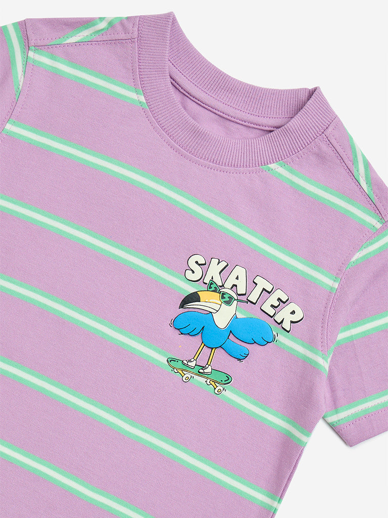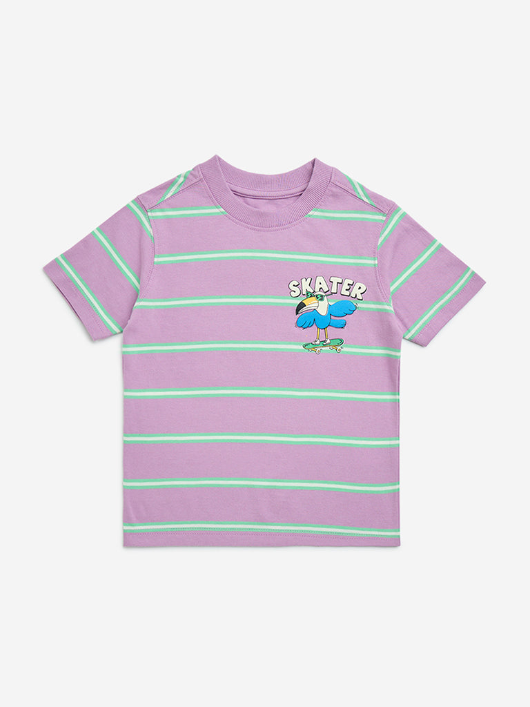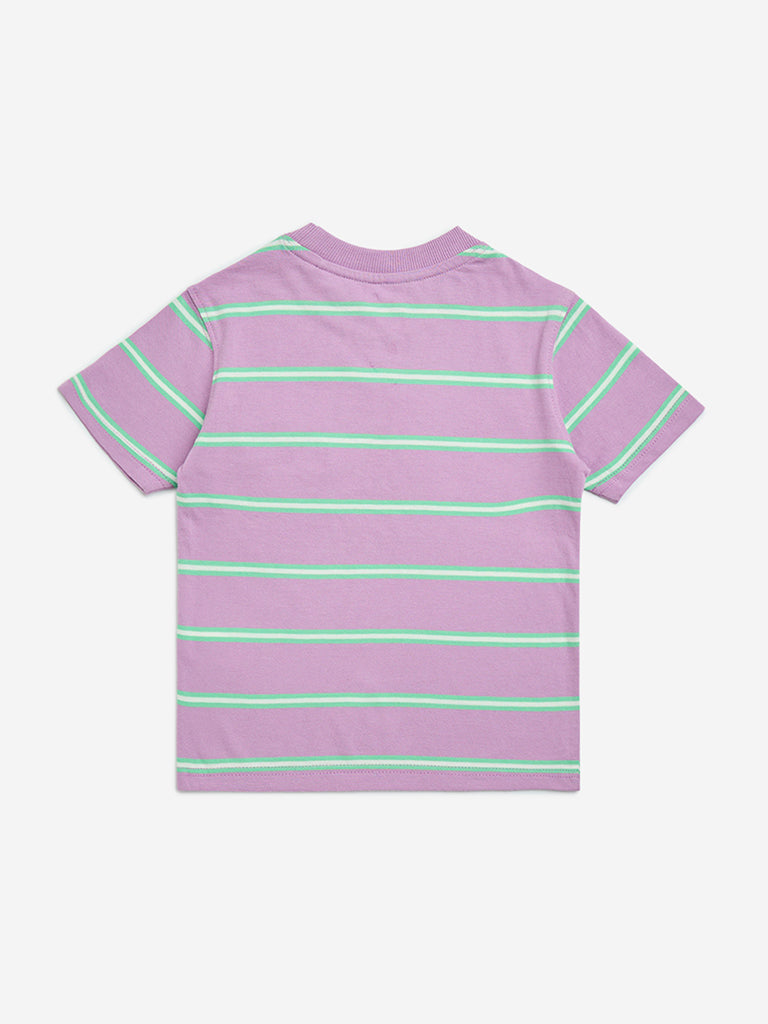 HOP Kids Lilac Stripe Printed Cotton T-Shirt