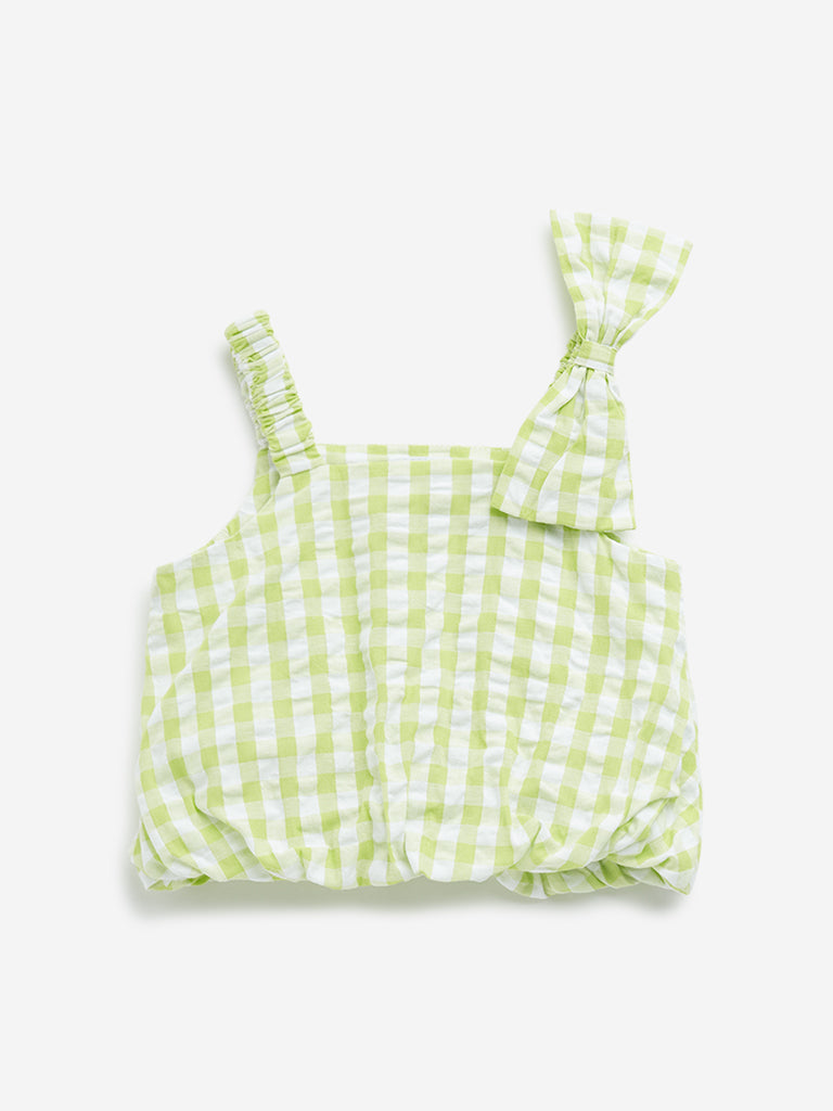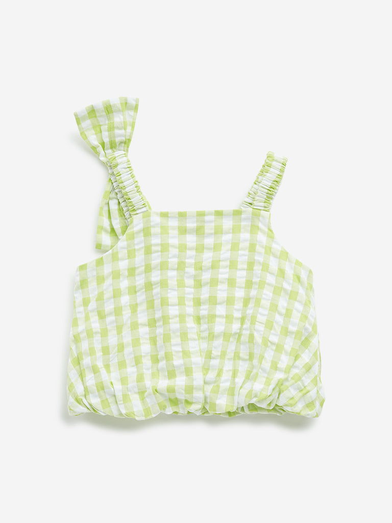 HOP Kids Lime Checkered Design Cotton Crop Top