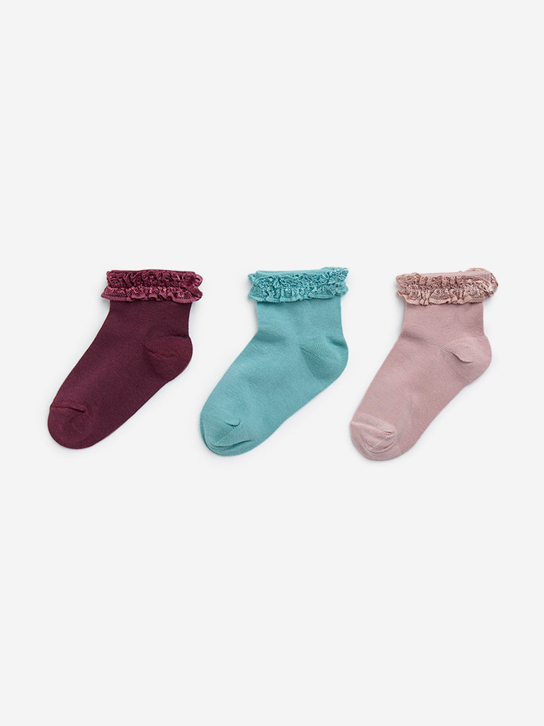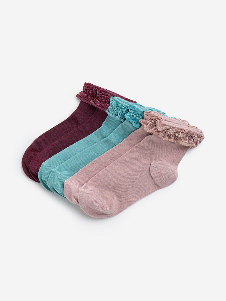 HOP Kids Mauve Lace-Detailed Cotton-Blend Socks – Pack of 3