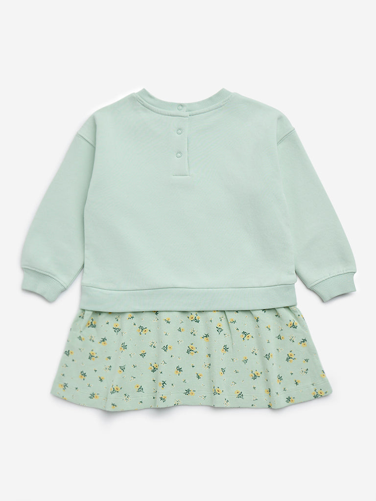 HOP Kids Mint Floral Design Cotton-Blend A-Line Dress
