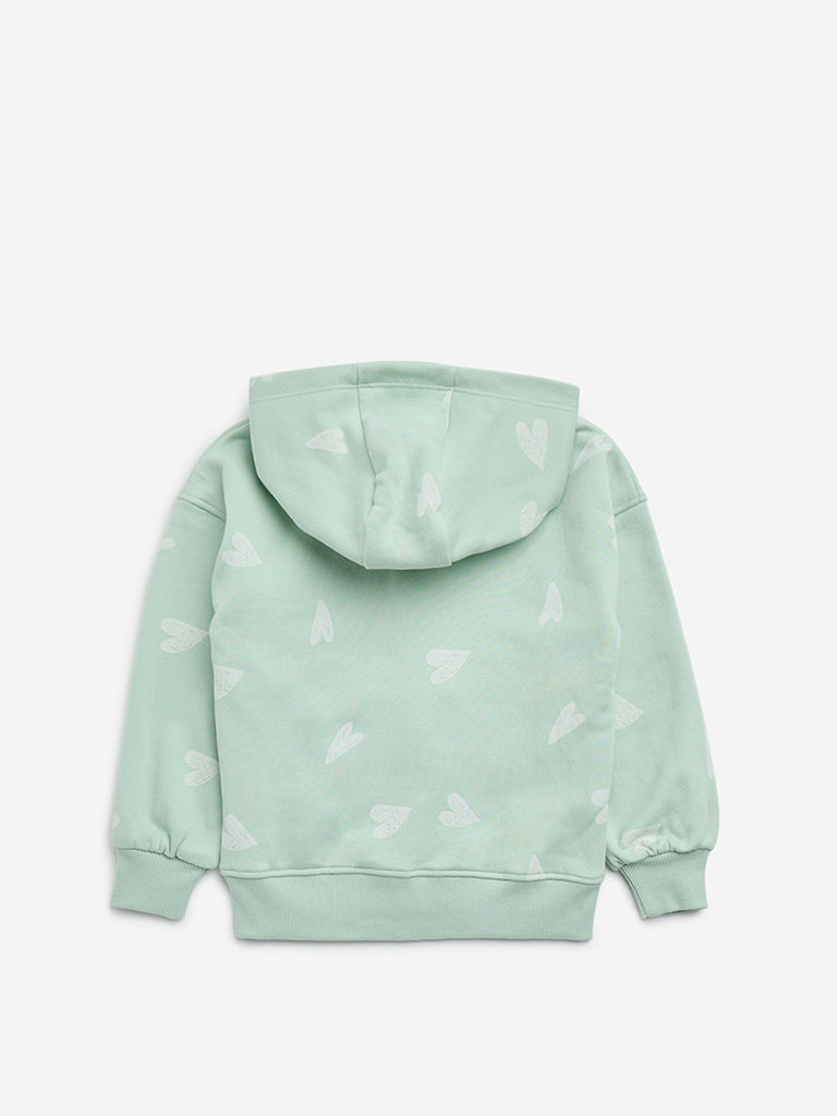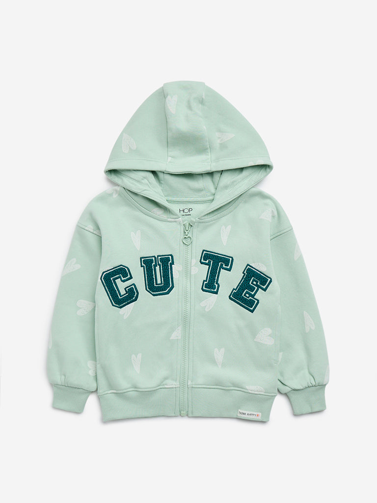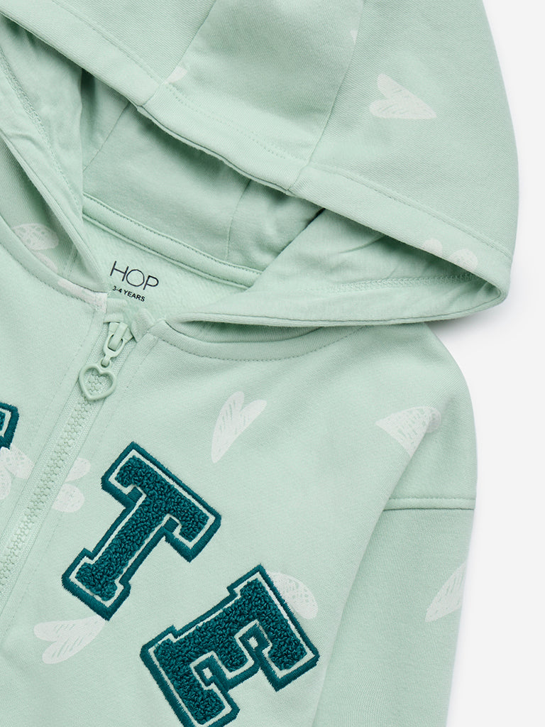 HOP Kids Mint Text Embroidered Cotton-Blend Sweatshirt