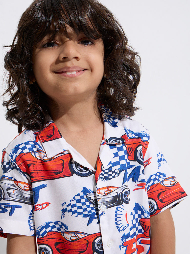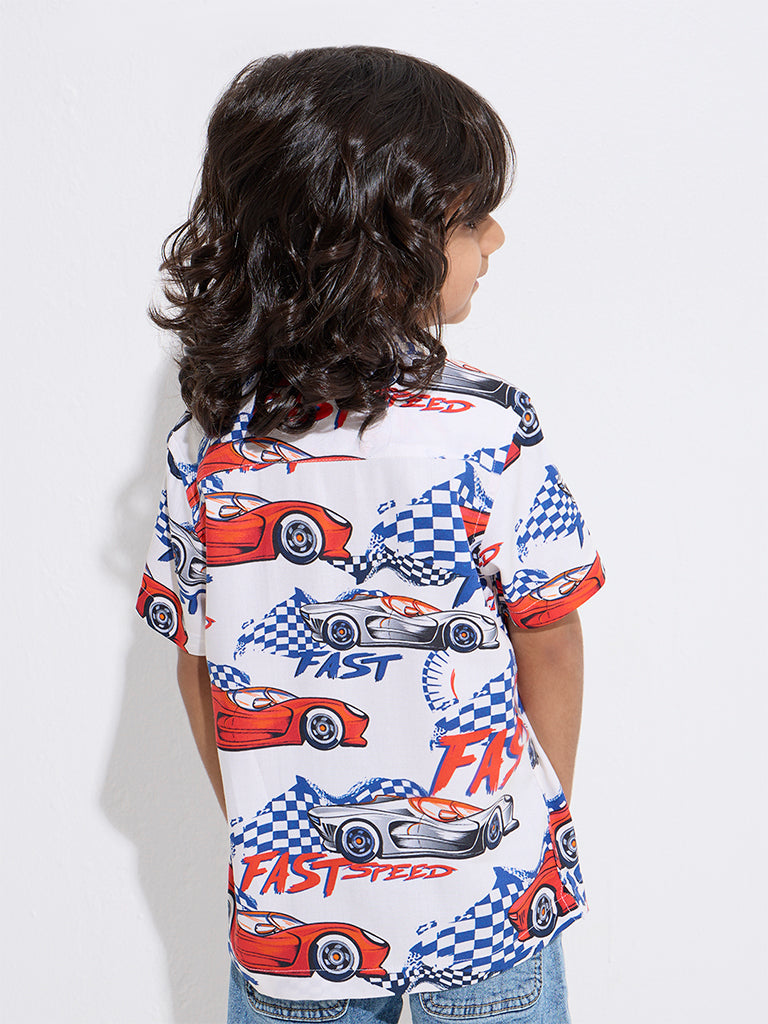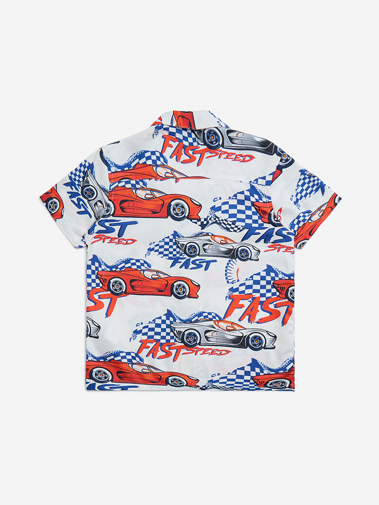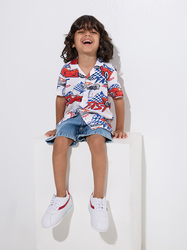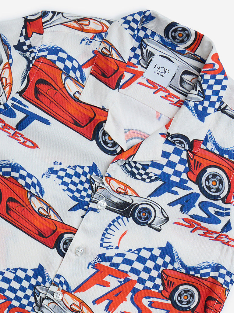 This multicolour shirt from HOP Kids is styled with playful car prints for a fun twist. Created from an ultra-lightweight fabric to keep little ones cool and comfy all day. it features a camp collar. a button placket. and short sleeves for a classic yet easy-going look.