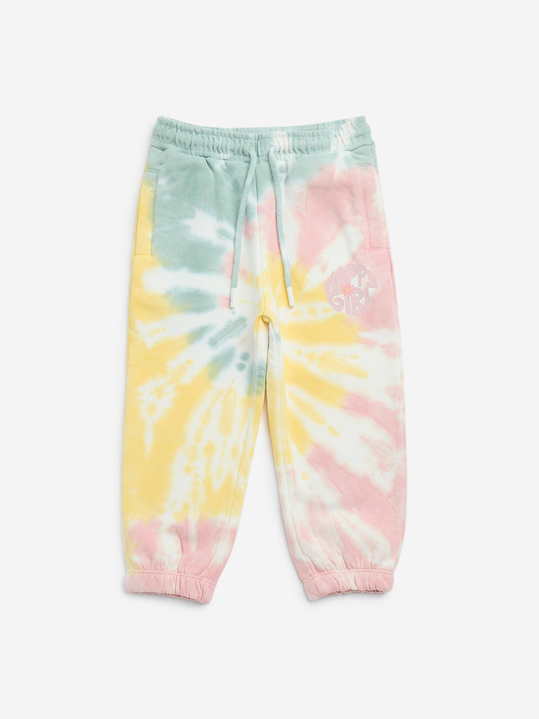 HOP Kids Multicolour Tie-Dye High-Rise Cotton-Blend Joggers
