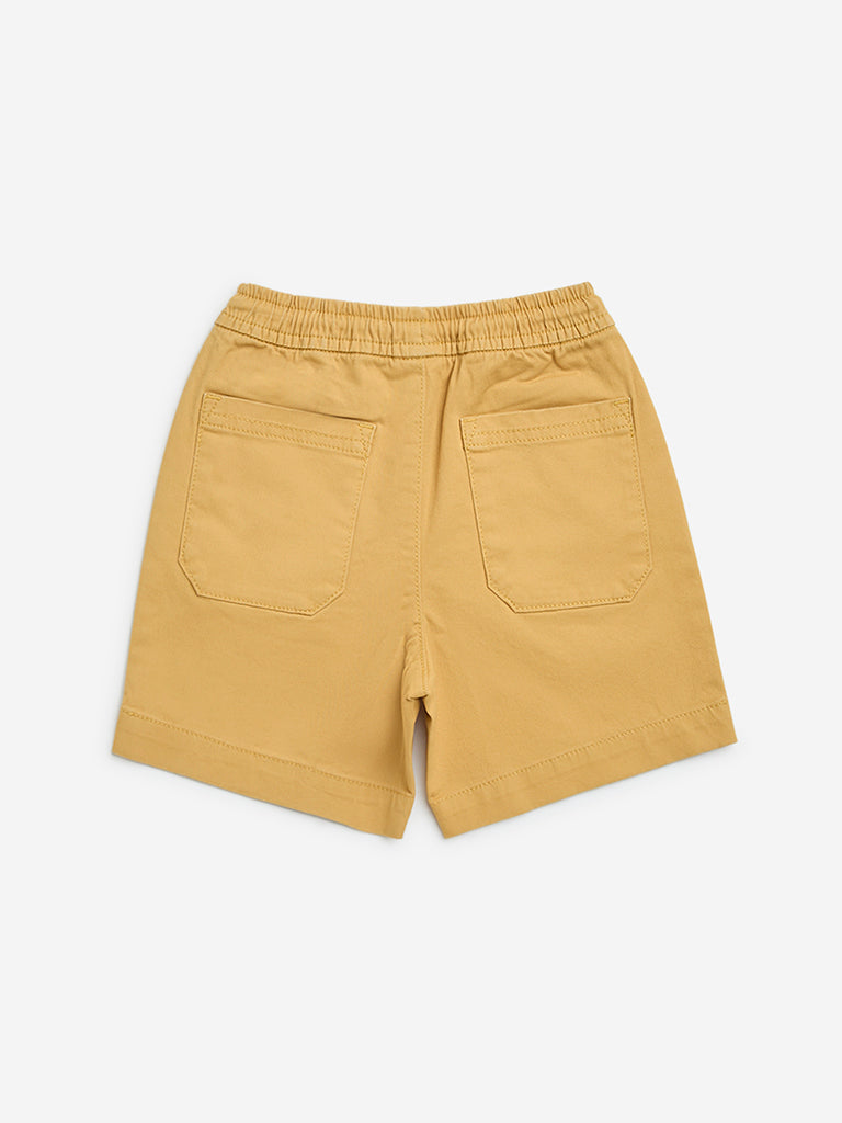 HOP Kids Mustard Mid-Rise Cotton-Blend Shorts