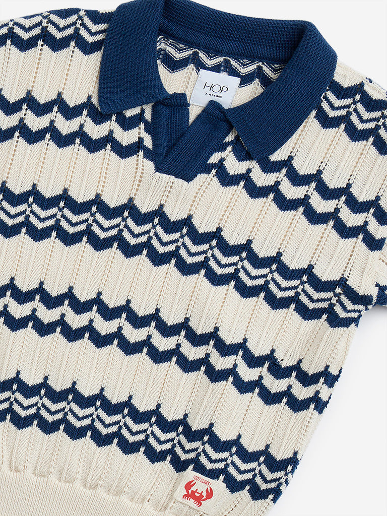 This navy t-shirt from HOP Kids offers knitted craftsmanship. Based on a regular fit frame. the winter wear boasts a collar neck and short sleeves.