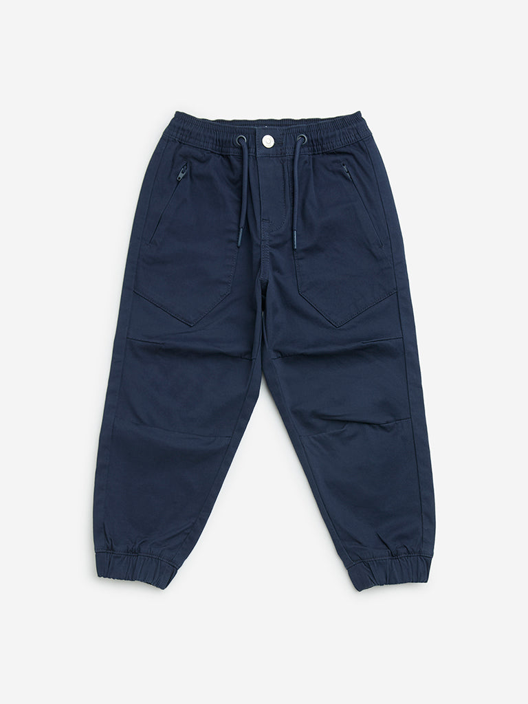 HOP Kids Navy Mid-Rise Cotton-Blend Joggers