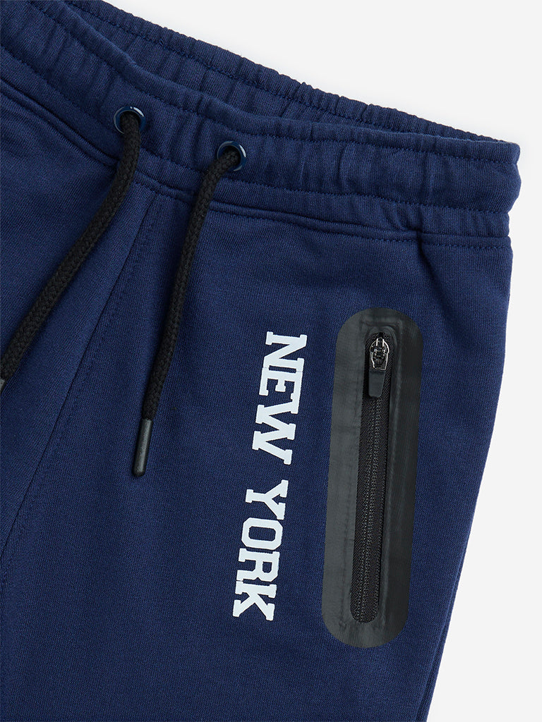 HOP Kids Navy Mid-Rise Cotton-Blend Shorts