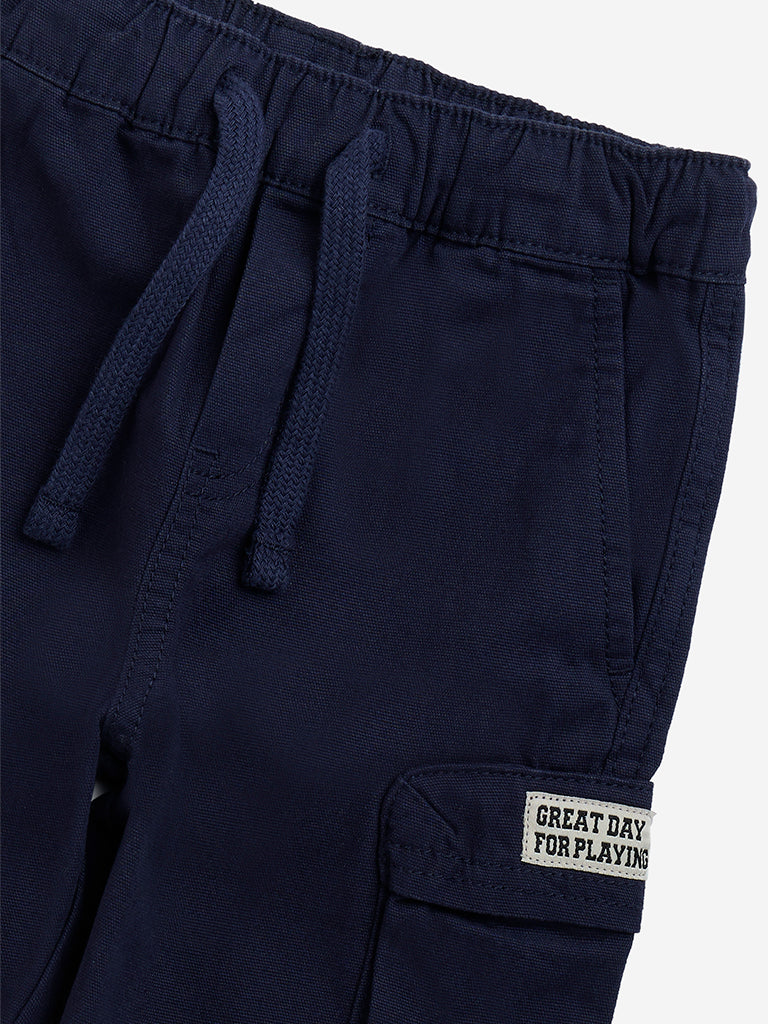 These navy shorts from HOP Kids are designed in a cargo style with multiple pockets for added functionality. Created from pure cotton. they offer ultimate comfort. The elasticated waistband with adjustable drawstrings ensures a secure fit.