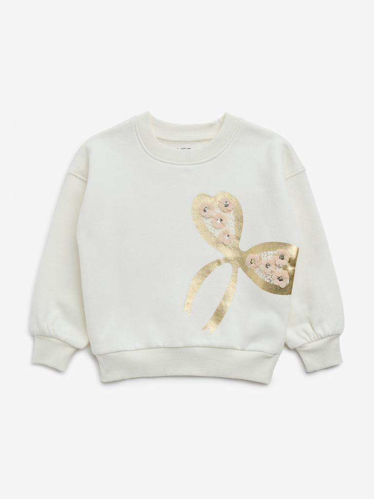 HOP Kids Off-White Bow Design Cotton-Blend Sweatshirt