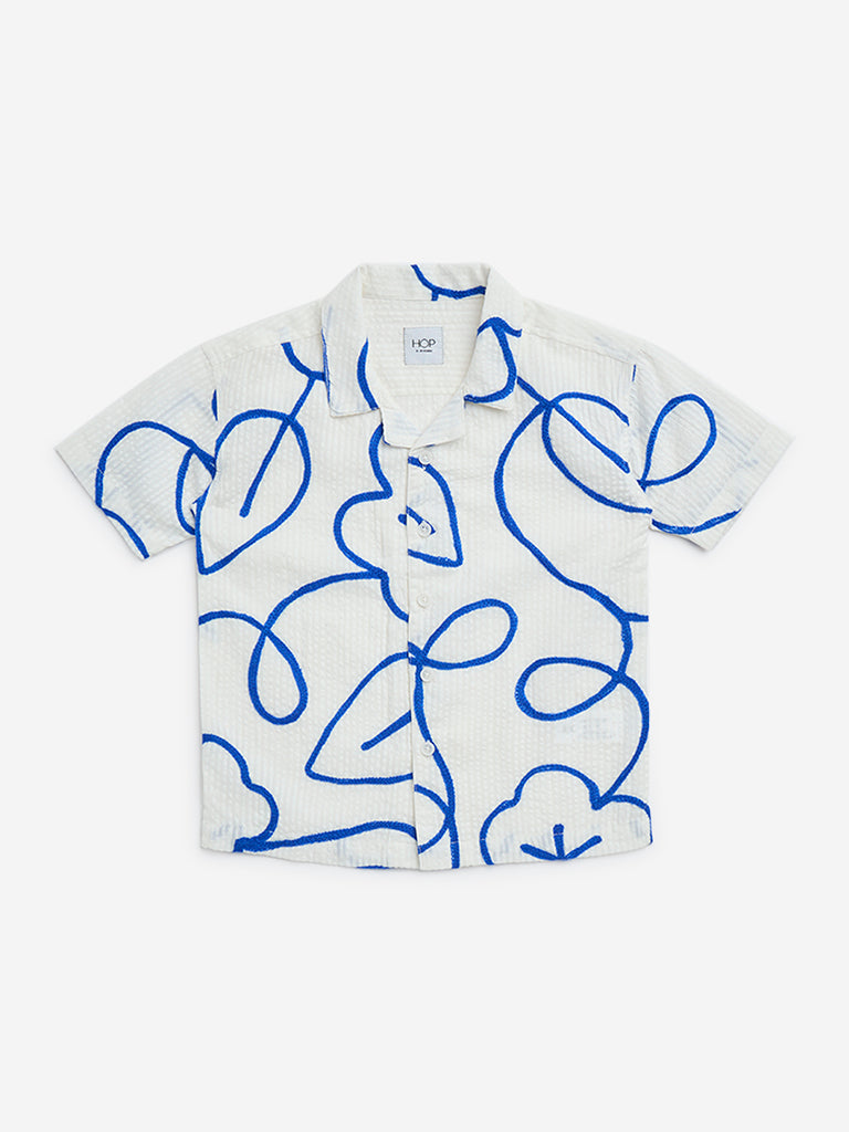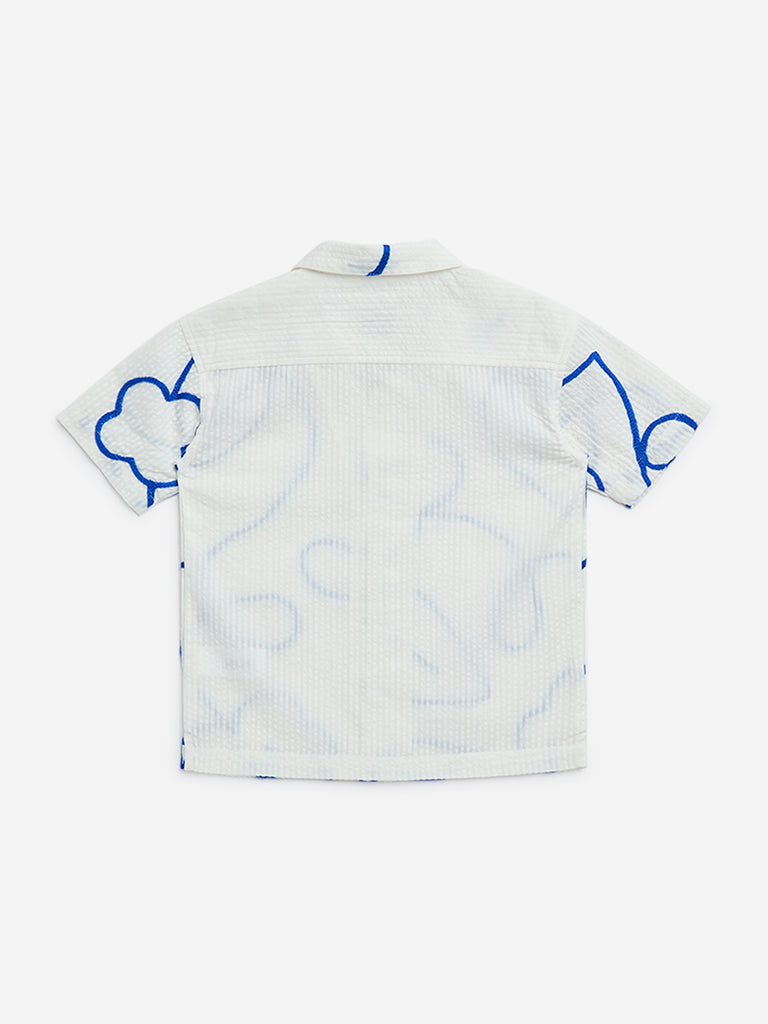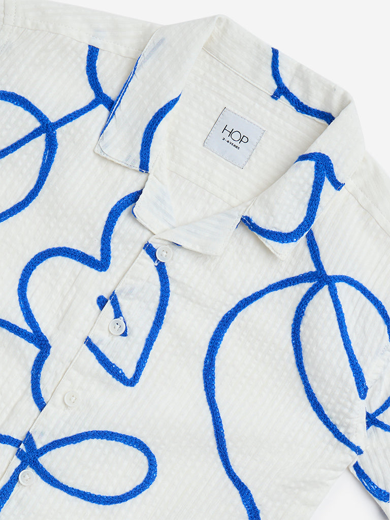 HOP Kids Off-White Embroidered Seersucker Cotton Shirt