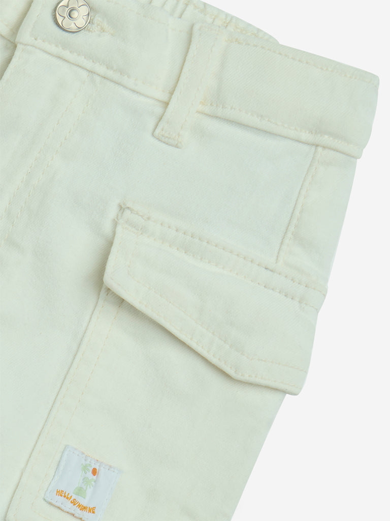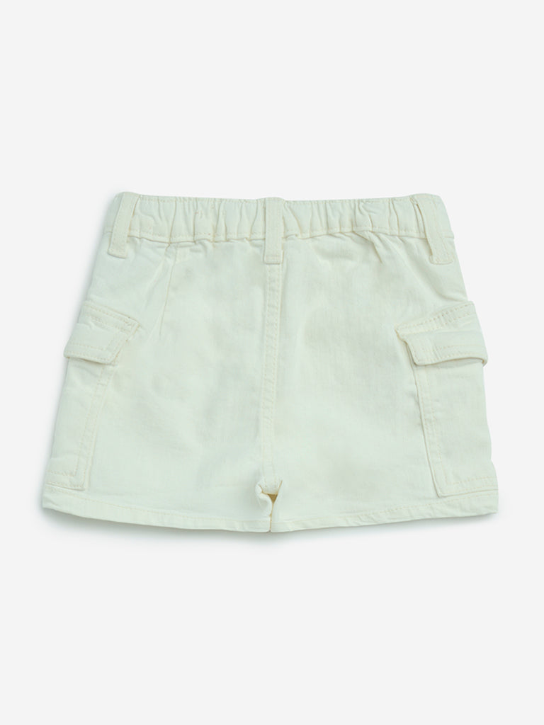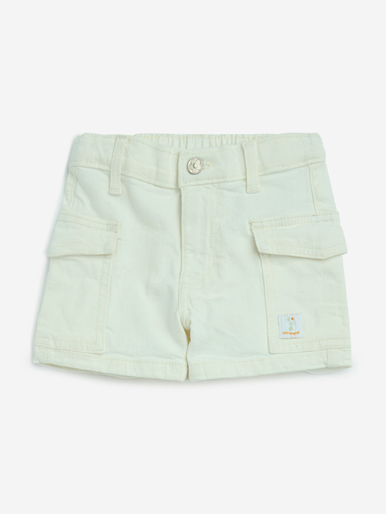 These off-white denim shorts from HOP Kids are constructed from a soft cotton-blend fabric for all-day comfort. Designed with a buttoned waist. belt loops. and a zip fly. they’re finished with side pockets for a practical touch.