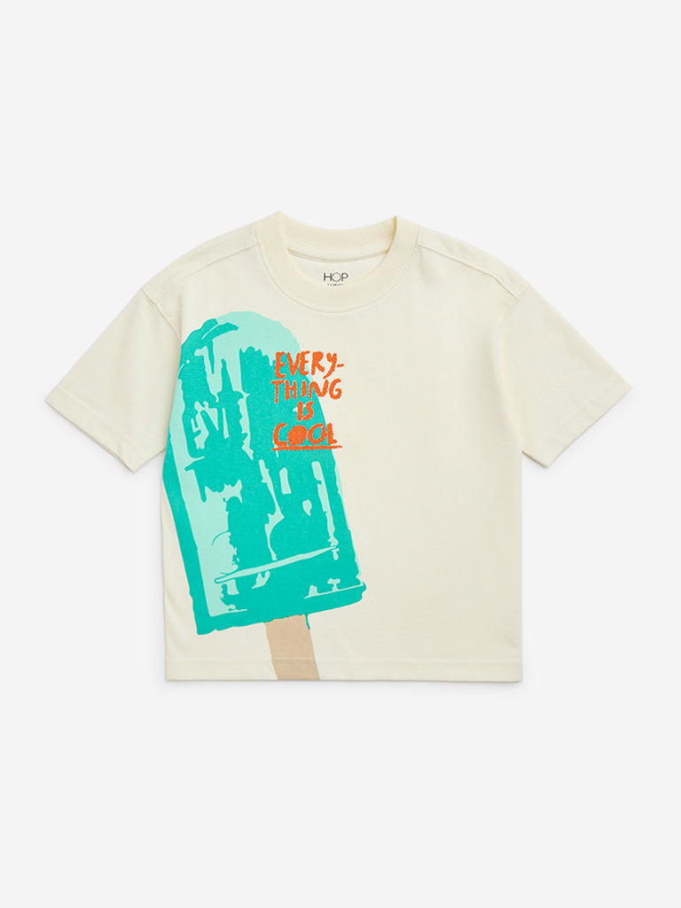 HOP Kids Off-White Ice-Cream Design Cotton T-Shirt