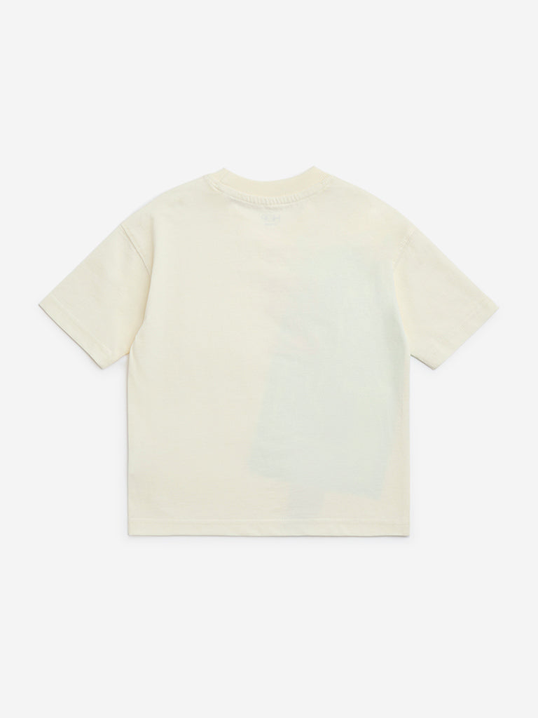 HOP Kids presents this off-white t-shirt featuring an eye-catching ice-cream design. Spun from pure-cotton for everyday comfort. it is complete with a round neck and short sleeves.