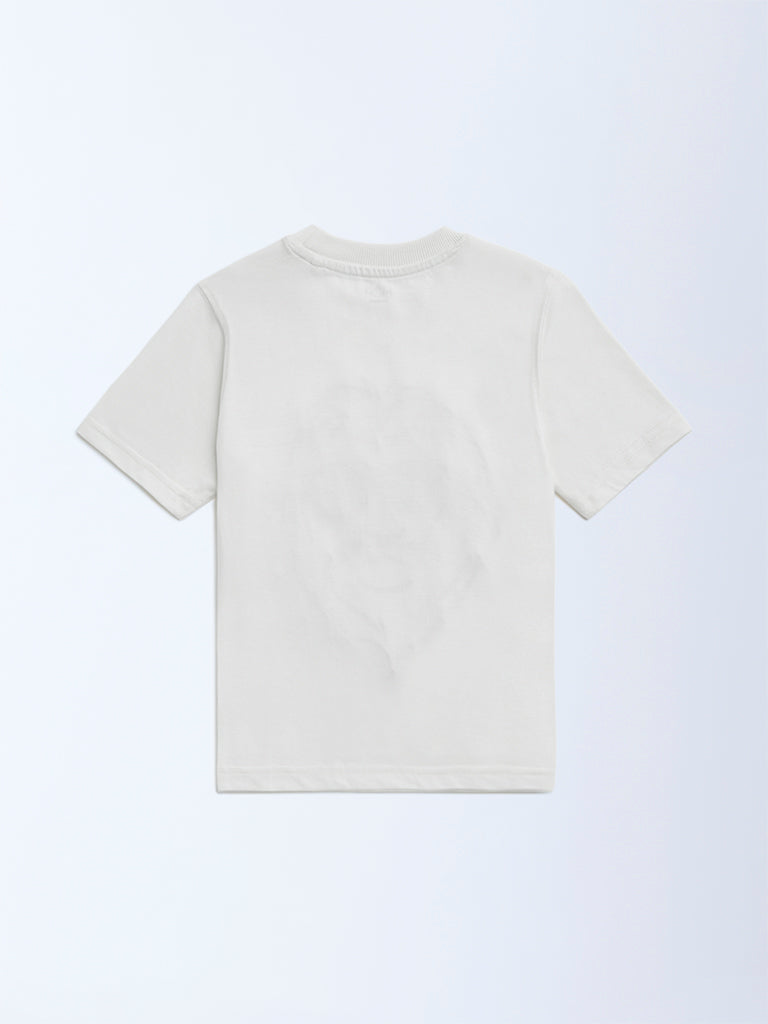 HOP Kids Off-White Lion Design Cotton T-Shirt