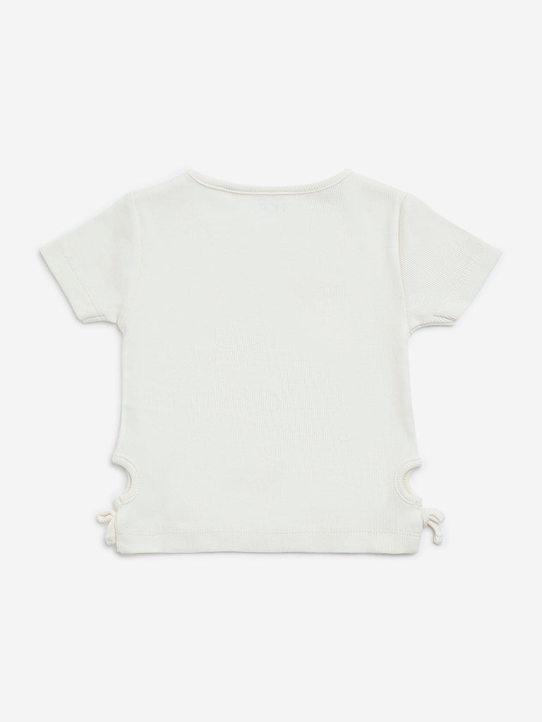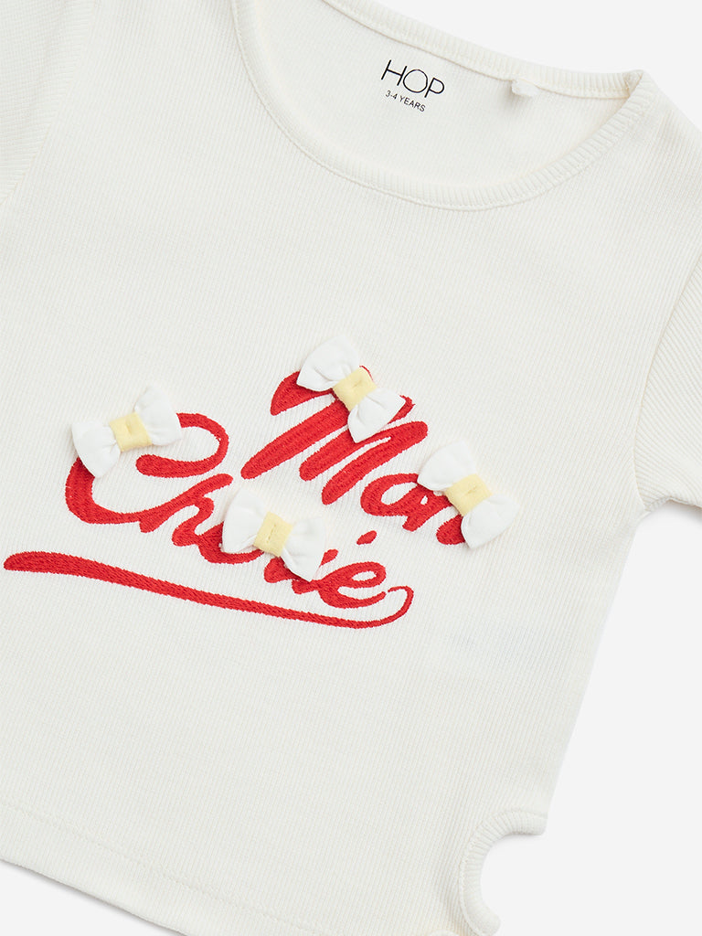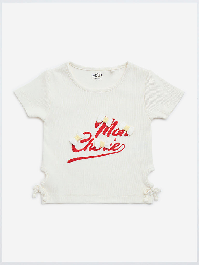 HOP Kids Off-White Text Design Cotton-Blend T-Shirt