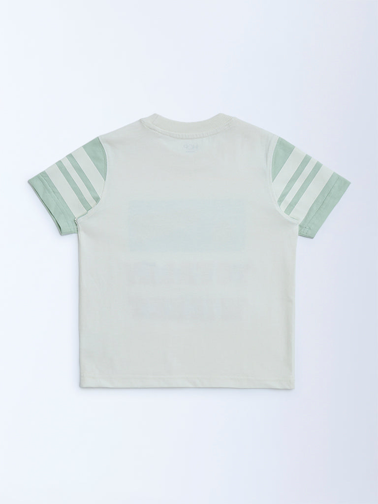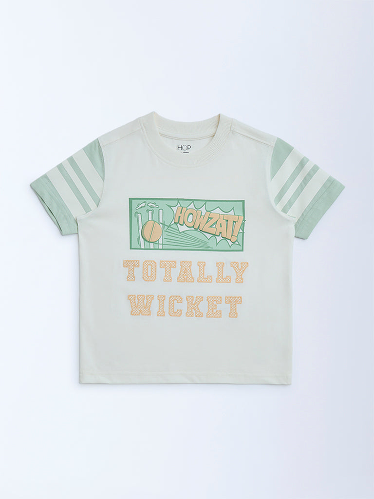HOP Kids Off-White Text Detailed Cotton T-Shirt
