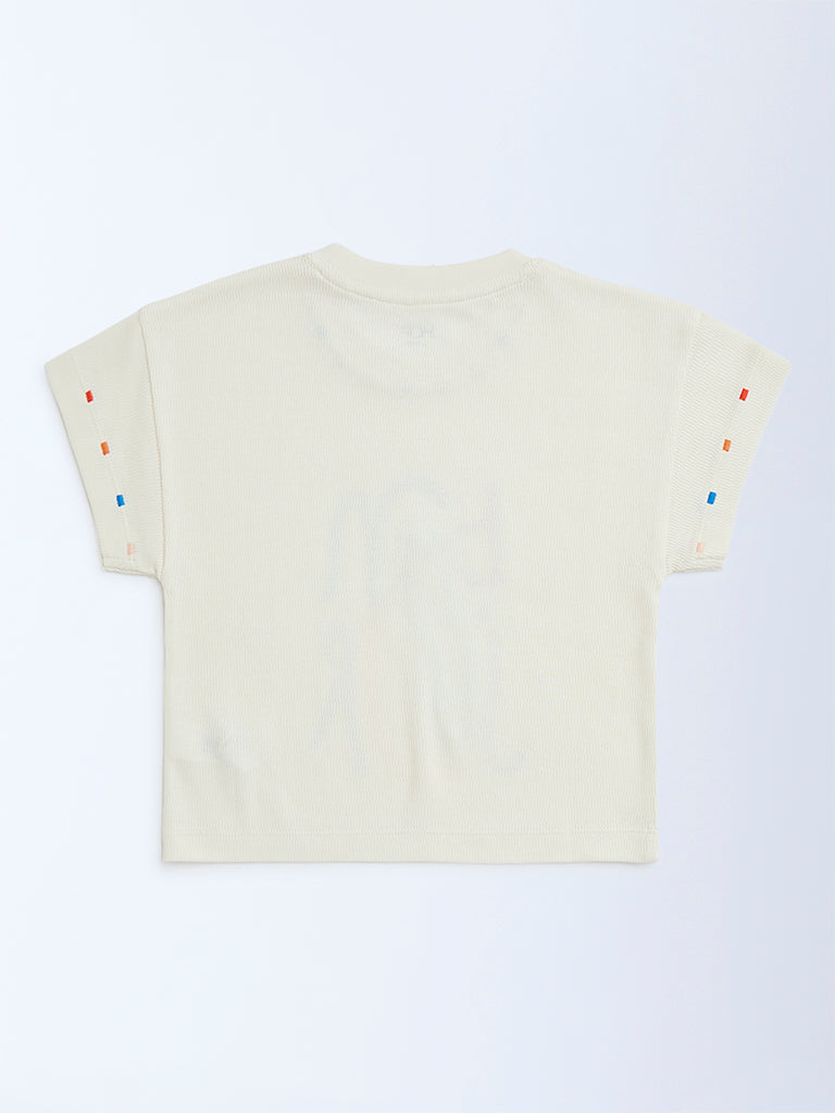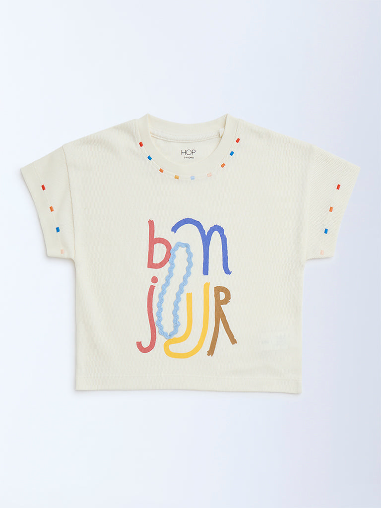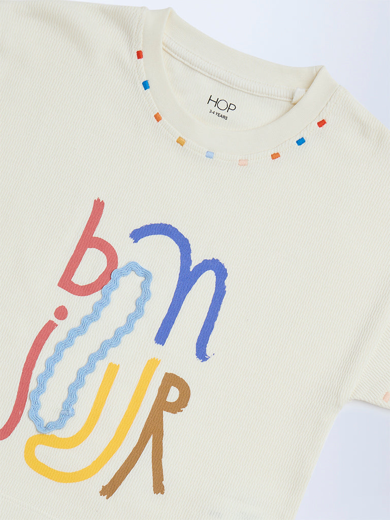 HOP Kids Off-White Text Printed Cotton T-Shirt
