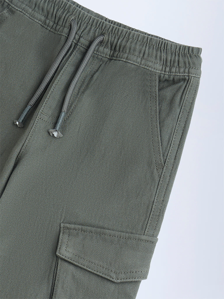 HOP Kids Olive Solid Mid-Rise Cotton-Blend Joggers