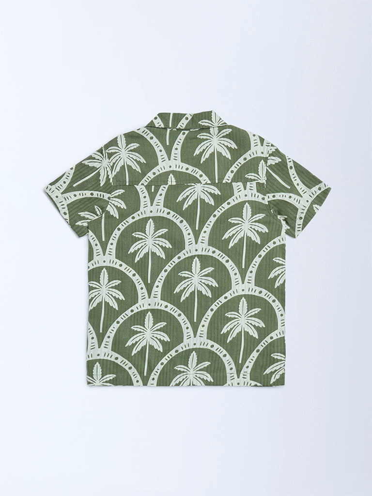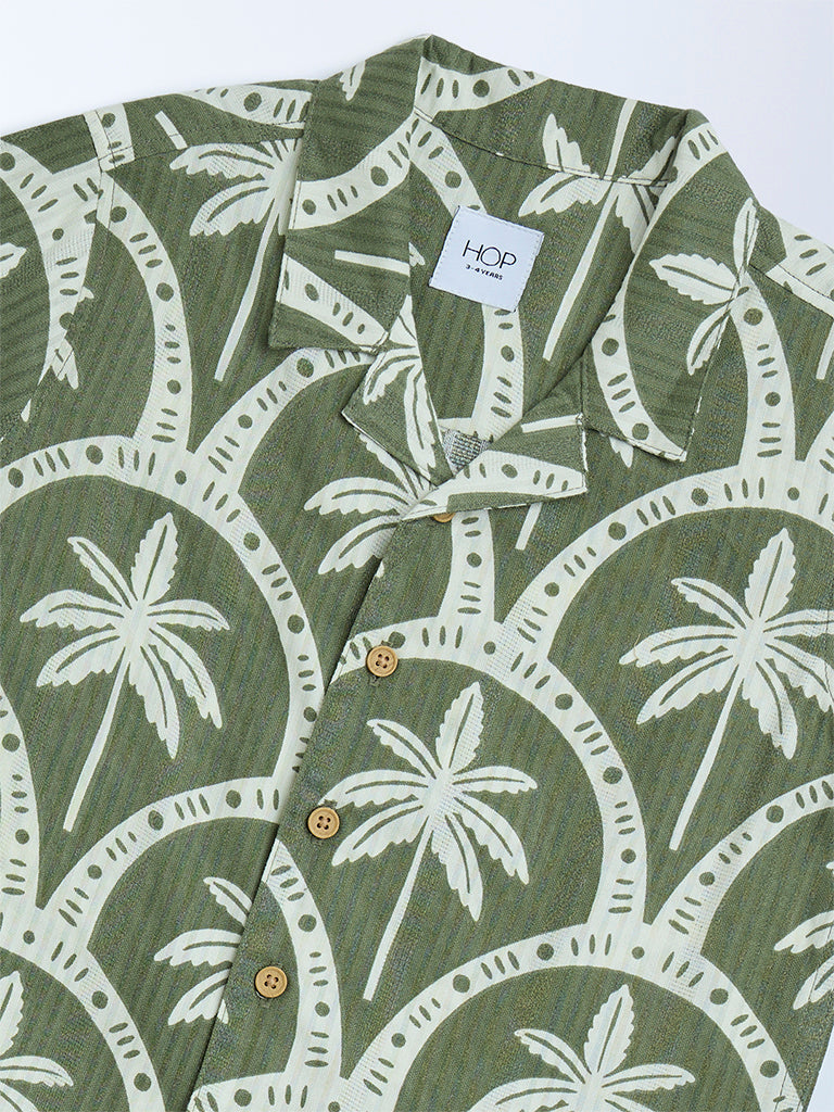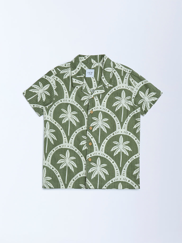 HOP Kids Olive Tropical-Inspired Cotton-Blend Shirt