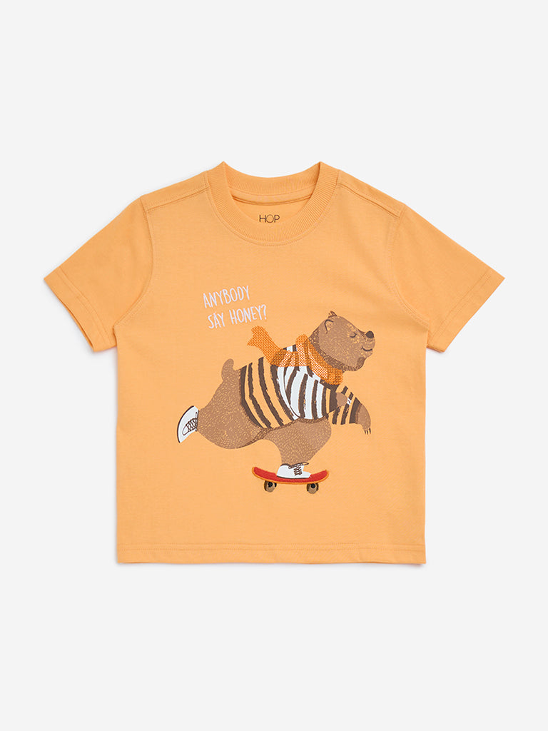 HOP Kids Orange Animal Design Cotton T-Shirt