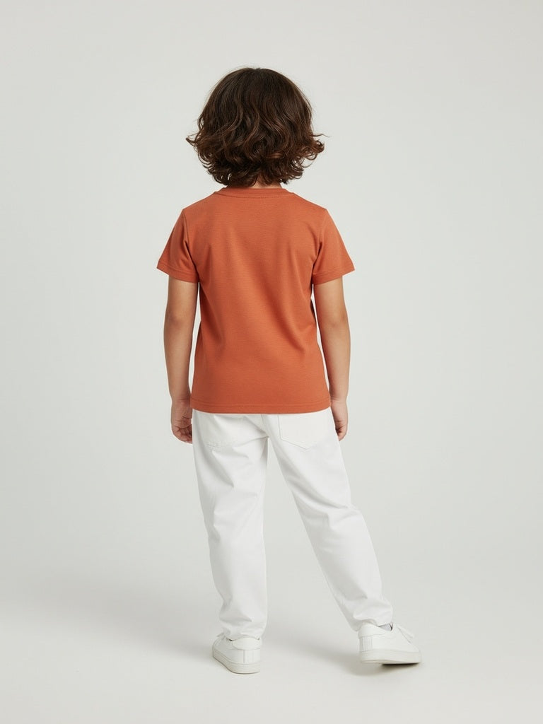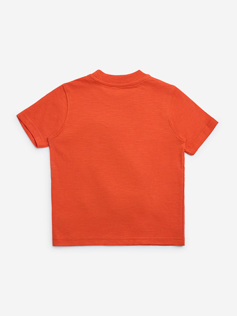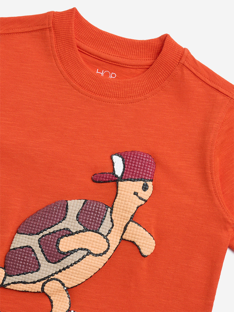 HOP Kids Orange Animal Embossed Cotton T-Shirt